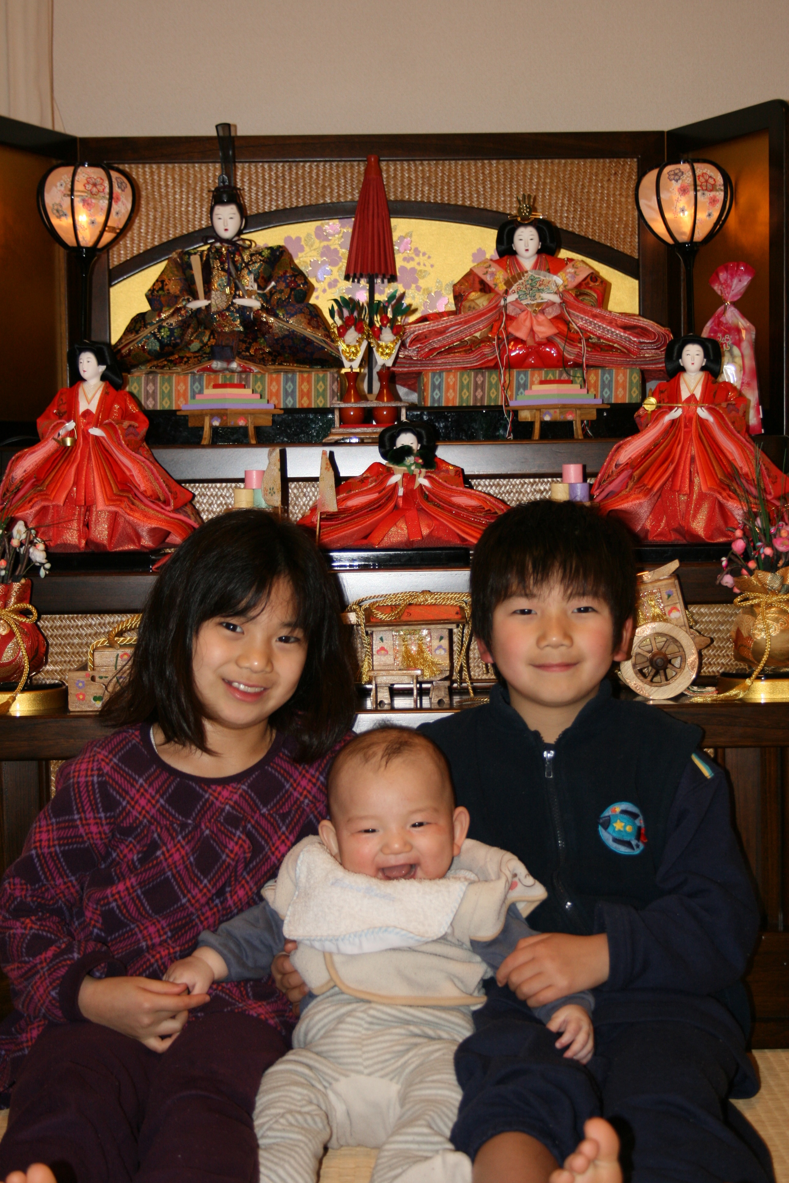 2010-03-03 / 最終更新日時 : 2010-03-03 tademako 日記 ひな祭り 3月3日ひな祭り! 我が家も盛大にお祝いしました。 奥様が、あらゆる誘惑に負けてしまい... ケーキ付き、手巻き寿司パーティー。 日本代表戦を見ながら、ビールに焼酎で乾杯。 徹夜明けだから、とってもいい気分です!! SORAは初めてのひな祭り。 お姉ちゃん、お兄ちゃんに囲まれて大満足です!!!! “ひな祭り” に対して1件のコメントがあります。 田舎のじいじ より: 2010-03-07 08:36 我家もお雛様を飾って風通しをと毎年思っているがなかなか出来ない。 虫食いがあるかも? 美幸・駿・空三人とも成長したね。 じじ、ばばは皆の成長が楽しみだからね。 コメントは受け付けていません。