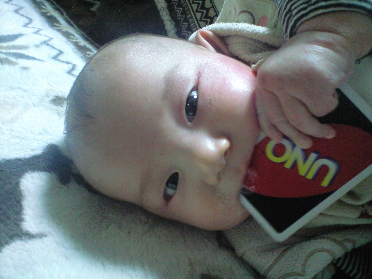 6ヶ月前に生まれたSORAは、最近ではUNOに参加しようと必死です。