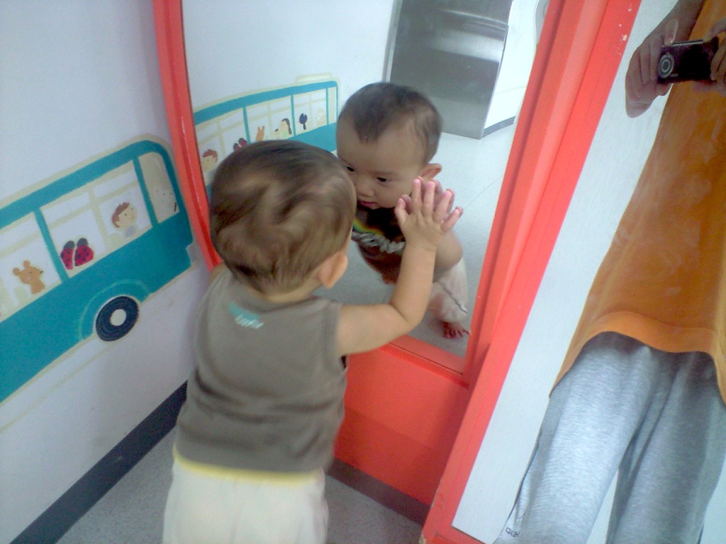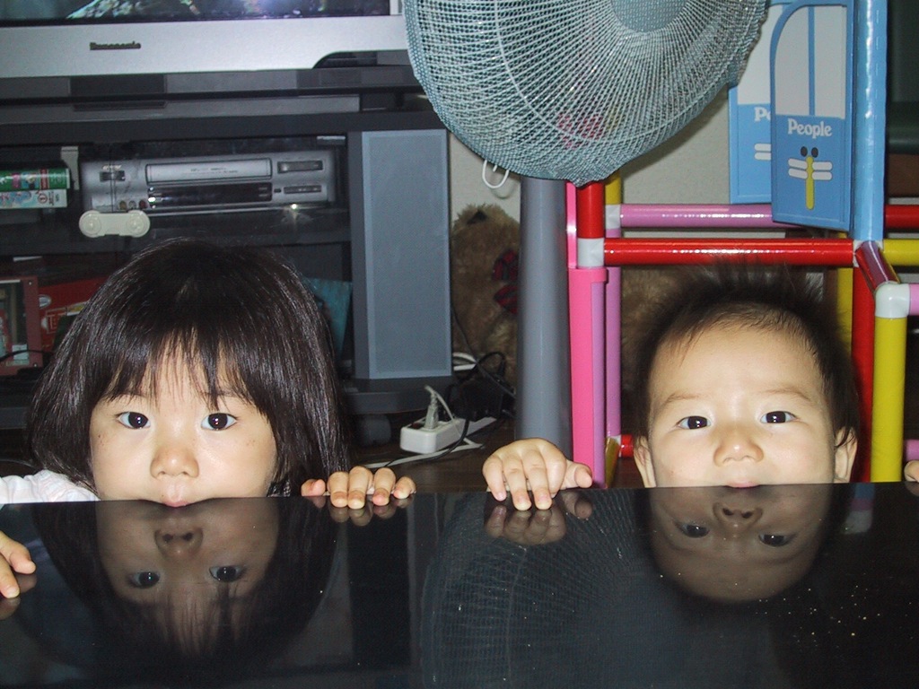 2010-08-25 / 最終更新日時 : 2010-08-26 tademako 日記 11ヶ月経ちました 明日、MIYUKIは無事退院する予定です。 初めての手術に不安一杯の4年生なので、朝から晩まで付き添いました。 しかし、病室には子供が入れないため、SORAを連れて行くことが出来ません。 だから、SORAは、暇で暇で...。 そんなSORAも気づけば11ヶ月。来月には1歳の誕生日を迎える事に。 今日は、おもしろ鏡に映る自分との格闘がとても楽しかった模様。 もちろん、こんなに頭長くないですよ! 下の写真は、HAYATOが11ヶ月(MIYUKIは1歳9ヶ月)の時の写真。 HAYATOは、髪の毛多かったんだぁ。