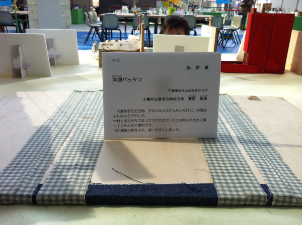 「洋服パッタン」という作品。学術的な名前なら、「洗濯物折り畳み支援装置」といったところでしょうか。
