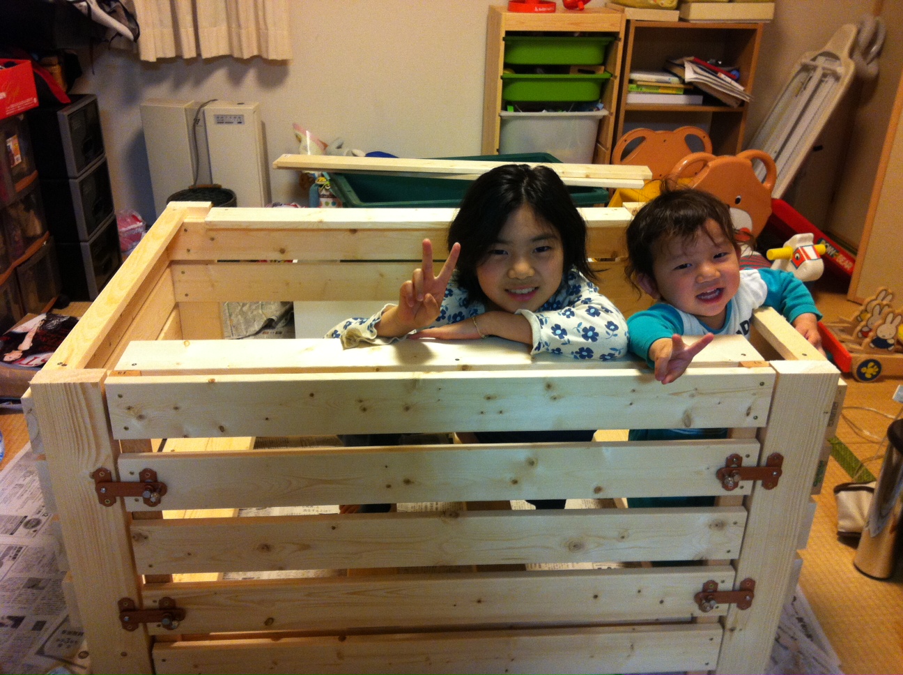 ウッドデッキで作る予定でしたが、気分は製作意欲にあふれている。中止にすることは出来ず和室に新聞紙を敷きつめて作業をすることに決定!